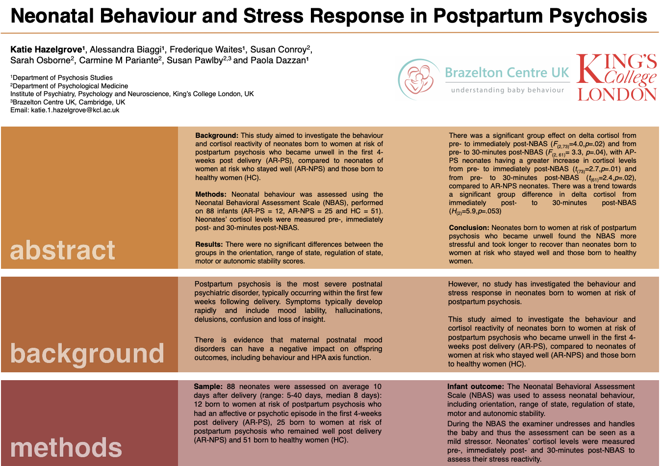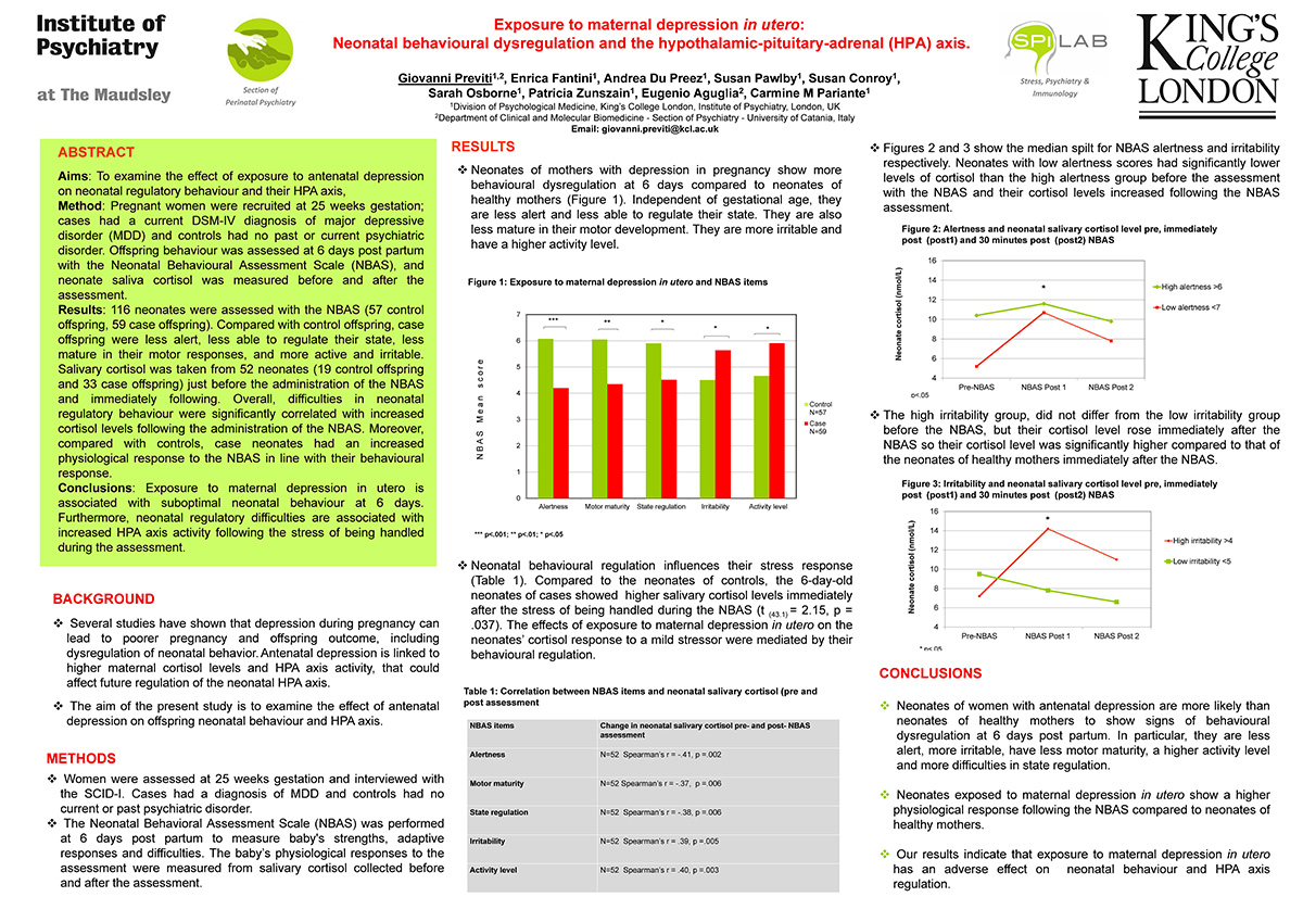 Osborne, S., Biaggi, A., Chua, T.E., Du Preez, A., Hazelgrove, K., Nikkheslat, N., Previti, G., Zunszain, P.A., Conroy, S., & Pariante, C.M. (2018). Antenatal depression programs cortisol stress reactivity in offspring through increased maternal inflammation and cortisol in pregnancy: The Psychiatry Research and Motherhood – Depression (PRAM-D) Study. Psychoneuroendocrinology , Volume 98 , 211 – 221